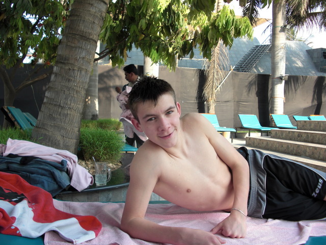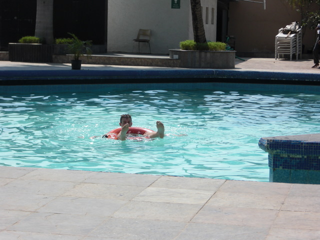 | Auf dem Rueckweg von Helsinki brachte ich Eric mit nach Pune. Hier beim relaxen am Pool des Pyramid Clubs. |