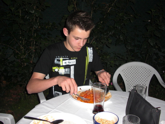 | Abends ging es dann auf die Abschiedsparty eines Franzosen. Hier gab es italienisches Buffet. |