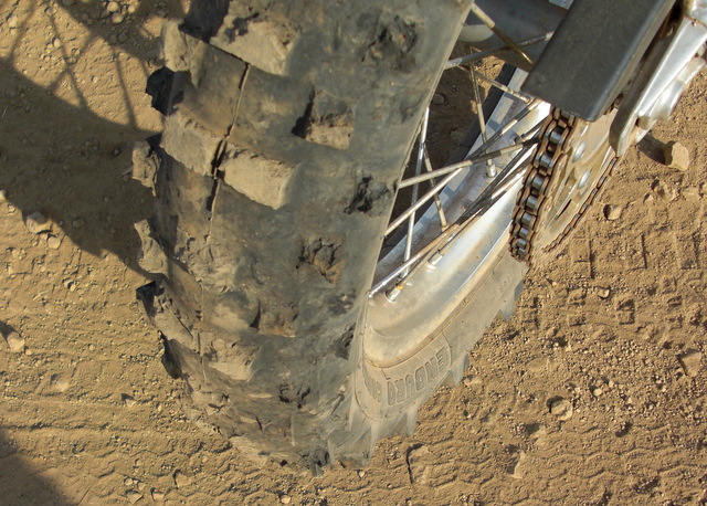 | Dieser Reifen ist schon aelter und wohl sproede. Mit der Leistung der LC4 kam er nicht zurecht auf dem harten Untergrund. |